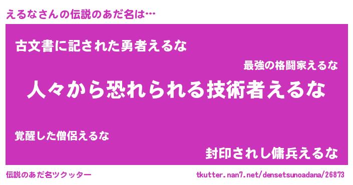 | ヘコむあだ名 | 『えるな(小並感)』『えるにー』 |