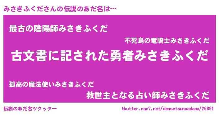 | 意味不明あだ名 | 『自称みさきふくだ』 |