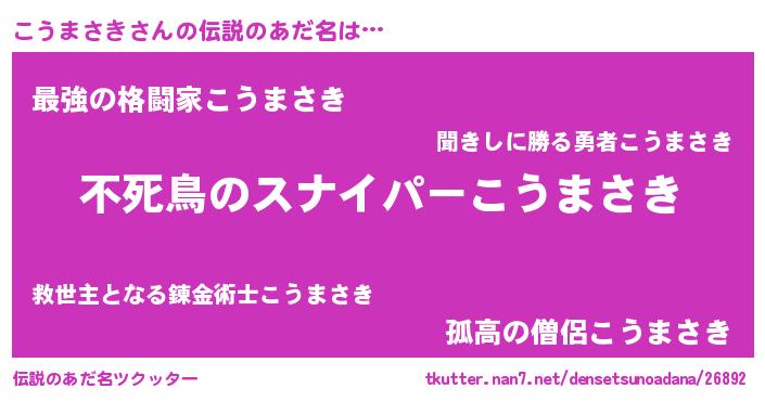胡散臭い通販商品みたいなあだ名 | 『モテモテ間違いなし霊験あらたかなお札…その名も「こうまさき」』 |