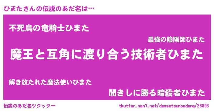| 女子向けラノベタイトル風あだ名 | 『ひまた恋絵巻』『ひまた姫と円卓の騎士』 |