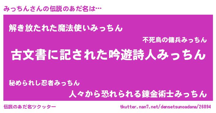 | 意味不明あだ名 | 『住所不定無職みっちん(10歳)』 |