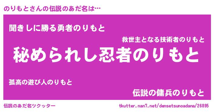 | 女子向けラノベタイトル風あだ名 | 『のりもとなんてお断りですっ。』 |