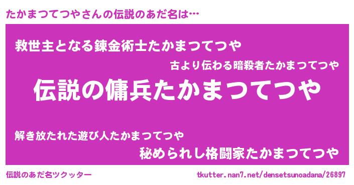 | 男性向けラノベタイトル風あだ名 | 『タカマツテツヤスレイヤー』 |