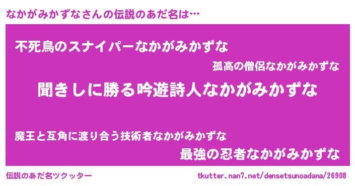 | 男性向けラノベタイトル風あだ名 | 『なかがみかずなという概念が存在しない退屈な世界 』 |