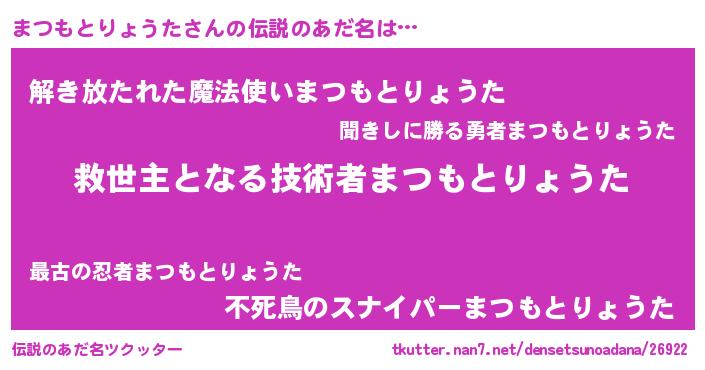| 男性向けラノベタイトル風あだ名 | 『ノーゲーム・ノーマツモトリョウタ』 |