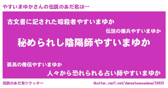 | ファンタジー風あだ名 | 『エターナルヤスイマユカー』 |
