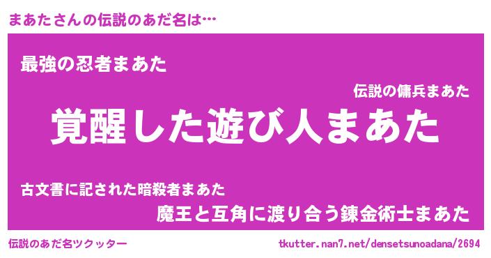 | 意味不明あだ名 | 『とにかく怪しいまあた』『自称まあた』 |