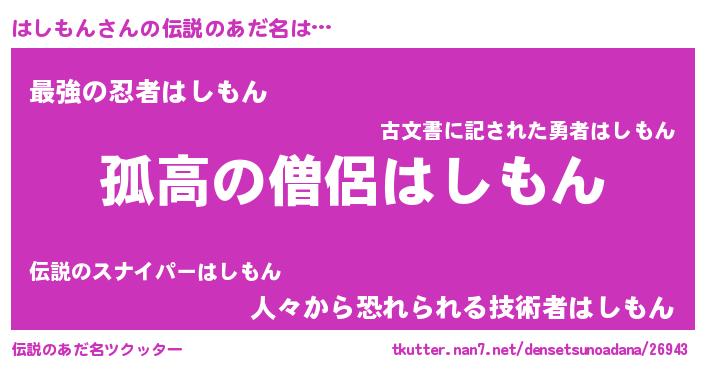 ヒーロー風カッコイイあだ名 | 『魔戒騎士ハシ』『ウルトラはしもんマン』 |