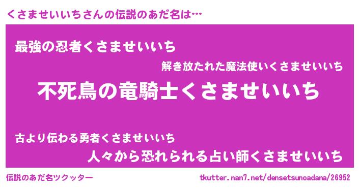 | 女子向けラノベタイトル風あだ名 | 『くさませいいち姫と円卓の騎士』 |