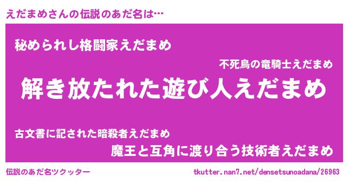 | ヒーロー風カッコイイあだ名 | 『銀牙騎士エダ』『ウルトラえだまめマン』 |