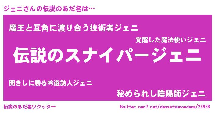 | 肩書あだ名 | 『ジェニ大将』『ジェニ閣下』 |