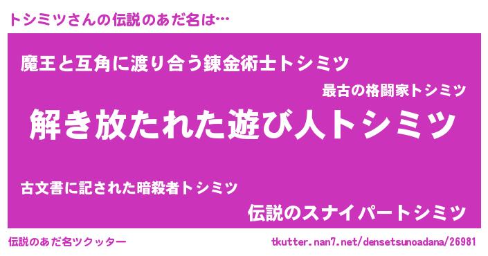 | 恥ずかしいあだ名 | 『トシリンリン』『トシミツデラックス』 |