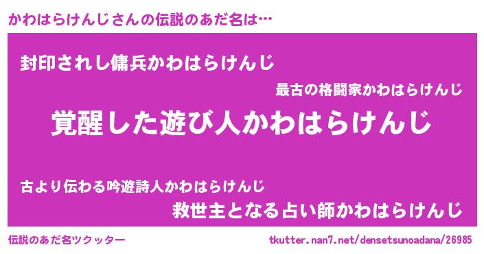 | ポケモン風あだ名 | 『ヒカワハラケンジ』『カワキング』 |