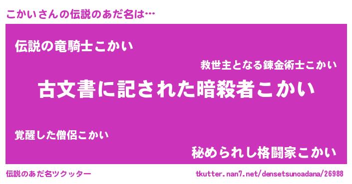 | 意味不明あだ名 | 『自称こかい』『永久保存こかい』 |