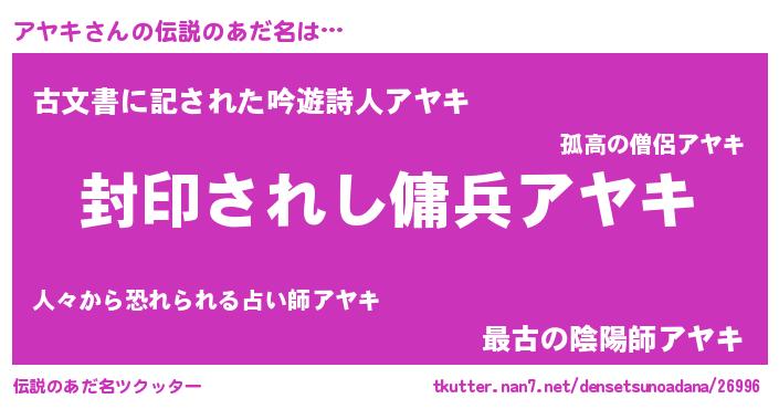 | 胡散臭い通販商品みたいなあだ名 | 『億万長者になれる水晶球…その名も「アヤキ」』 |