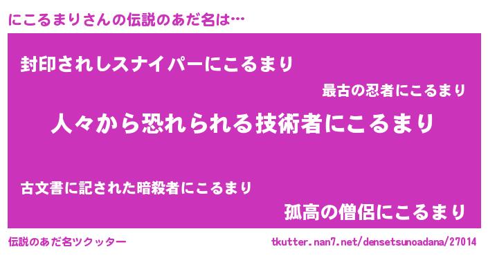 | ヒーロー風カッコイイあだ名 | 『友情の使者にこるまり』『銀牙騎士ニコ』 |
