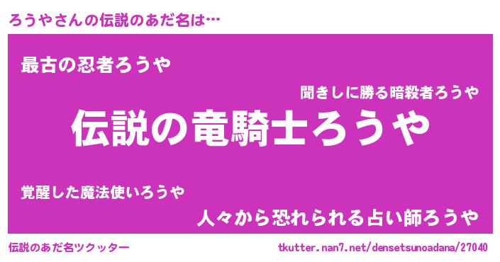 | 男性向けラノベタイトル風あだ名 | 『魔弾の王とろうや』『ろうやの憂鬱』 |