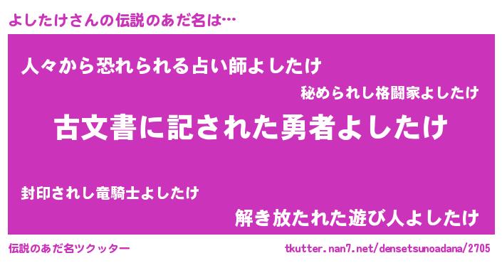 | 意味不明あだ名 | 『永久保存よしたけ』 |