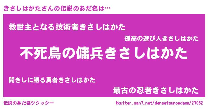 | ヒーロー風カッコイイあだ名 | 『スーパーキサシハカタ』『黄金騎士キサ』 |