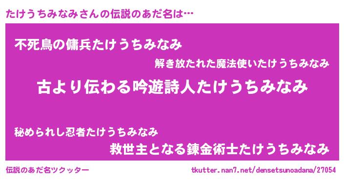 | 意味不明あだ名 | 『自称たけうちみなみ』 |