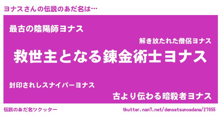 | ヒーロー風カッコイイあだ名 | 『天空の使者ヨナス』『ネオヨナス』 |