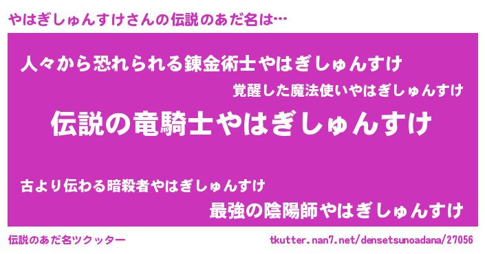 | ヒーロー風カッコイイあだ名 | 『スーパーヤハギシュンスケ』 |