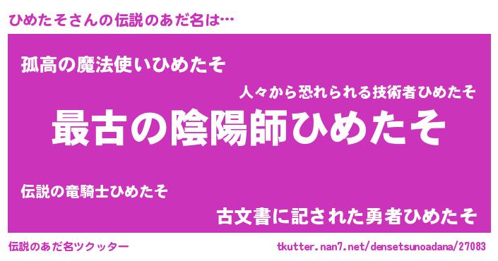 | ファンタジー風あだ名 | 『エターナルヒメタソー』『ゼヒメトゥ』 |