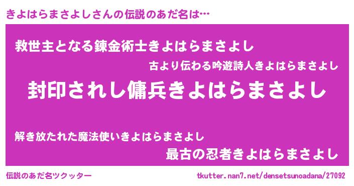 | 胡散臭い通販商品みたいなあだ名 | 『億万長者になれる水晶球…その名も「きよはらまさよし」』 |