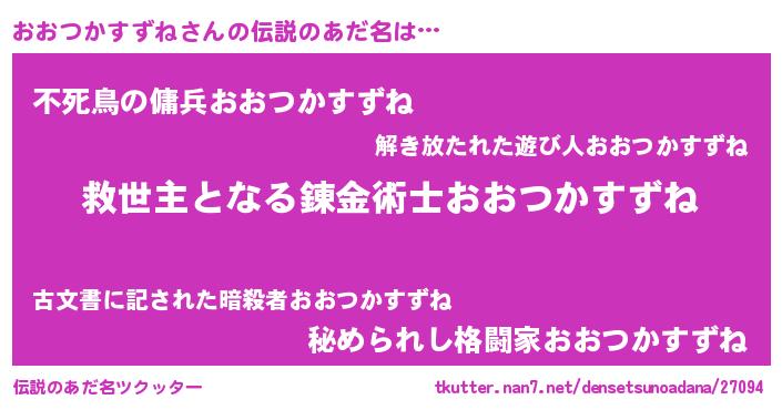 | 男性向けラノベタイトル風あだ名 | 『ノーゲーム・ノーオオツカスズネ』 |