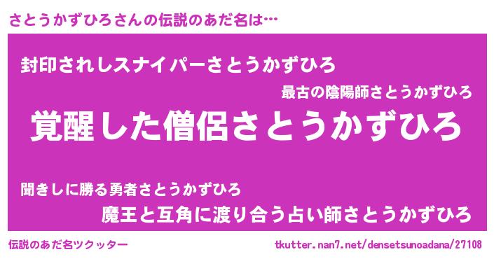 | 男性向けラノベタイトル風あだ名 | 『さとうかずひろの嫁は女の子じゃないと思った?』 |