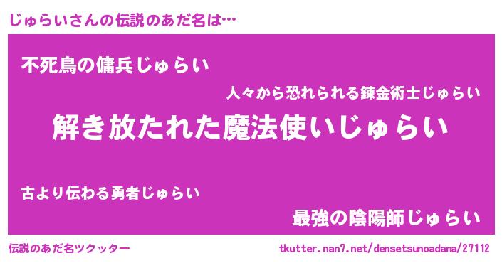 | ポケモン風あだ名 | 『ヒジュライ』『ジュチュウ』 |