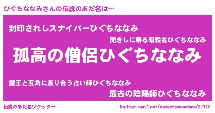 | 男性向けラノベタイトル風あだ名 | 『ダンジョンにひぐちななみを求めるのは間違っているだろうか』 |