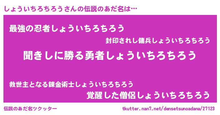 | 女子向けラノベタイトル風あだ名 | 『異世界で失敗しない100のしょういちろちろう』 |