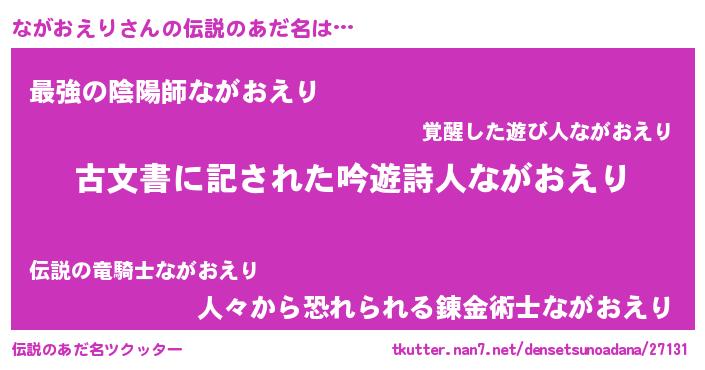 | 意味不明あだ名 | 『永久保存ながおえり』『自称ながおえり』 |