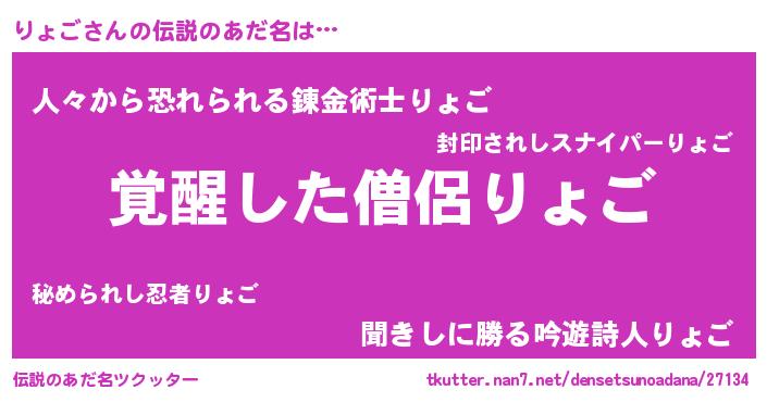 | 意味不明あだ名 | 『とにかく怪しいりょご』『自称りょご』 |