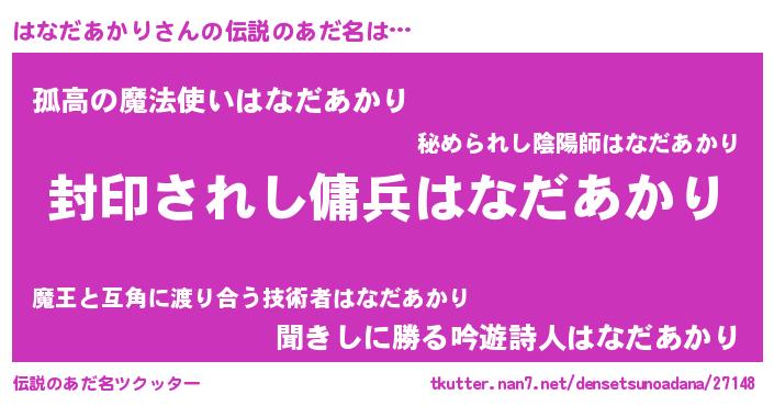 | 意味不明あだ名 | 『住所不定無職はなだあかり(68歳)』 |