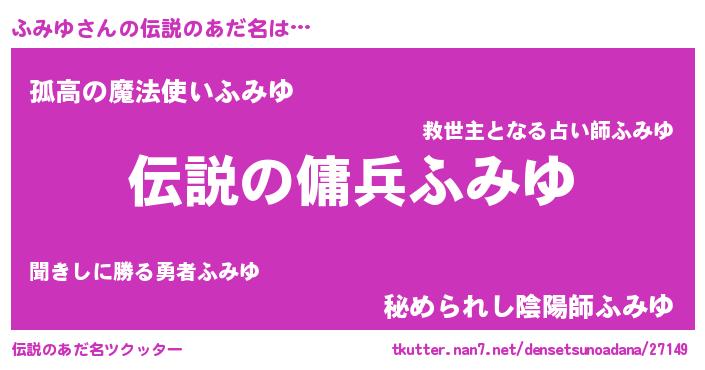 | 男性向けラノベタイトル風あだ名 | 『緋弾のフミユ』『はたらくふみゆさま!』 |