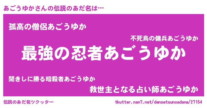 | ファンタジー風あだ名 | 『エターナルアゴウユカー』『ゼアゴトゥ』 |