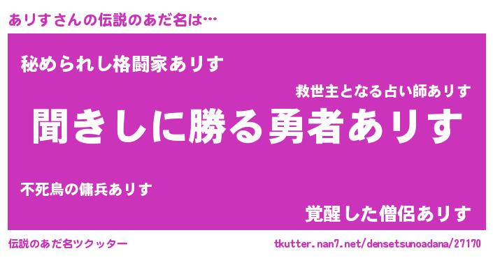 | ファンタジー風あだ名 | 『アリディッシュ』『エターナルアリスー』 |