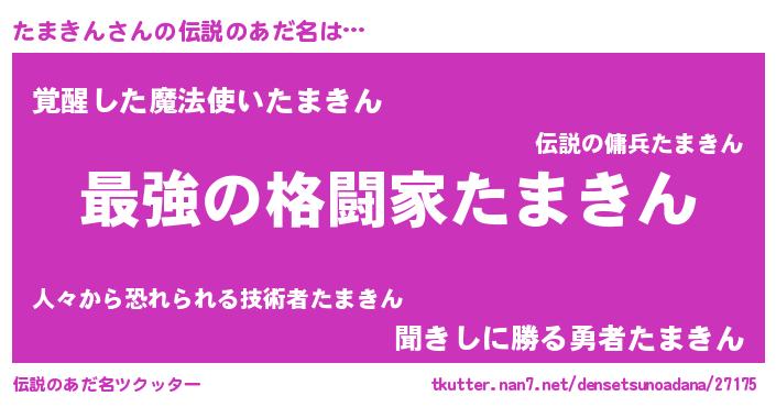 | ヒーロー風カッコイイあだ名 | 『ウルトラたまきんマン』『仮面タマダー』 |