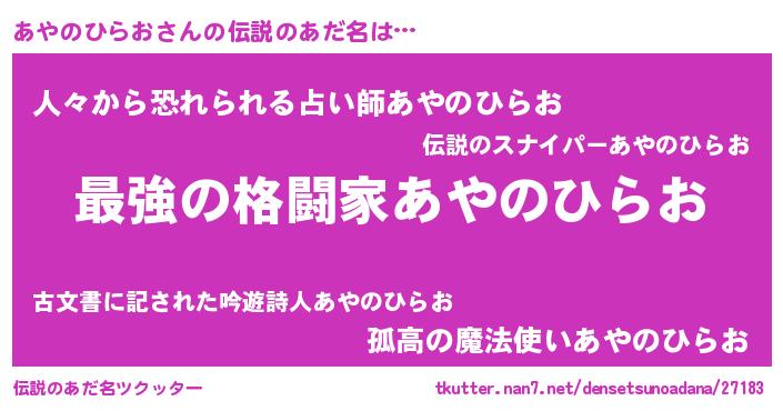 | 意味不明あだ名 | 『住所不定無職あやのひらお(5歳)』 |