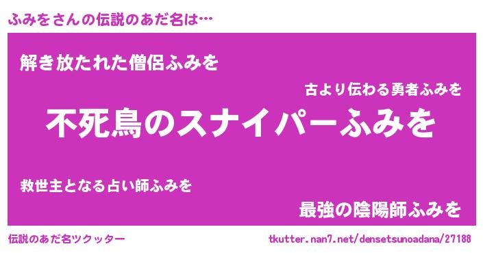 | 胡散臭い通販商品みたいなあだ名 | 『モテモテ間違いなし霊験あらたかなお札…その名も「ふみを」』 |