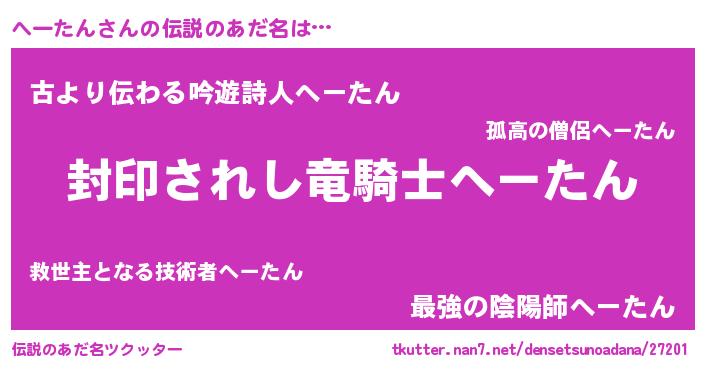 | ヒーロー風カッコイイあだ名 | 『スーパーヘータン』『ネオヘータン』 |