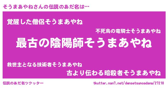 | 男性向けラノベタイトル風あだ名 | 『やはりそうまあやねの青春ラブコメはまちがっている 』 |