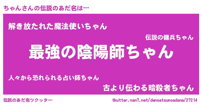 | ヒーロー風カッコイイあだ名 | 『ウルトラちゃんマン』『銀牙騎士チャ』 |