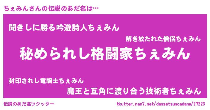 | 意味不明あだ名 | 『自称ちぇみん』『ちぇみんフォーエバー』 |