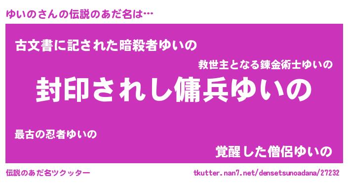 | 胡散臭い通販商品みたいなあだ名 | 『億万長者になれる水晶球…その名も「ゆいの」』 |