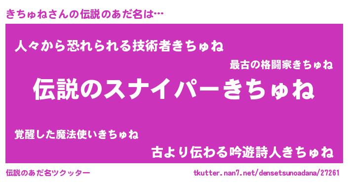 | 欧米人風あだ名 | 『アンジェラ・きちゅね』 |