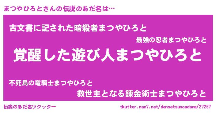 | ヒーロー風カッコイイあだ名 | 『天弓騎士マツ』『最強戦士マツヤヒロト』 |