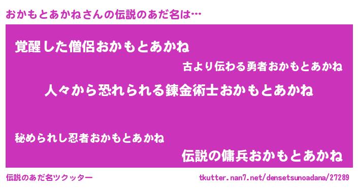 | 男性向けラノベタイトル風あだ名 | 『おまえをオタクにしてやるから、俺をおかもとあかねにしてくれ! 』 |